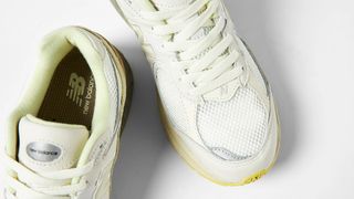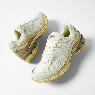 Though each pair arrives in similar blocking there are unique difference between the pairs/ Firstly, the wheat-based pair leans more towards seasonal suede and minimal use of melon-green accents. The accompanying pair — a white-based release — severs up a more noticeable mix of colors, with a stronger focus on the leather construct. Both pairs arrive on a sail, olive, and yellow N-ERGY-loaded midsole, with alternating outsoles of black and gold rounding out the designs.