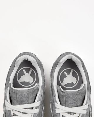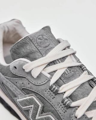 While understated in color scheme, the project features a faux hair makeover across the upper. New Balance's signature grey tone appears from toe to hind-foot, with white contrast appearing throughout the profiles and tongue. Underfoot, the sole unit keeps things simple, abandoning the bright red seen on other work by Kinninger. A set of pink laces arrives in the grey plaid-adorned shoe box that packages the limited edition collaboration.