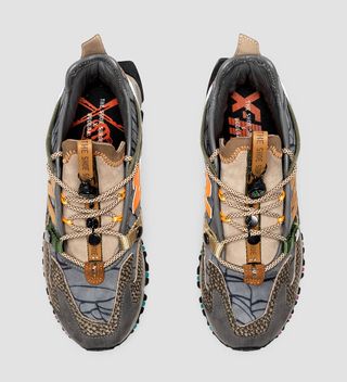 We wanted to approach the collaboration with a mindfulness of functionality to go hand-in-hand with the collection theme of “Adapt”. The footwear and tote were inspired by utilitarian workwear, with a heavy influence on functional details – loops, directional compass, and reflective 3M. We used neutral, textural earth tones to play off the inspiration of the woods in combination with bold pops of color. The colors work in synergy with nature and play a role in transforming challenges into lasting positive changes.