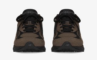 Swapping the silhouette’s signature greys for soft brown hues, JJJJound has leveraged select overlays hues for contrast, working through the toe and ankle, as well as the laces and liners in black. The midfoot N motifs follow in charcoal and black, with a completely murdered-out sole unit completing the design.