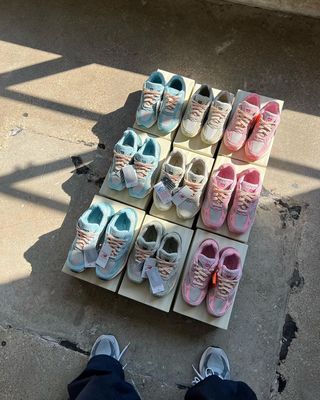 The trio of shoes is linked by light grey mesh uppers, aged-look accents at the laces and midsoles, and rich pastel suede and perforated leather overlays. It’s the latter that differentiates the pairs, with pink, green, and blue hues flushing their respective pairs; midsole trim and rubber outsoles all arrive in-line with their respective colors overlays up top. Each comes attached with a “Performance Art” card, explaining the ethos behind the design.