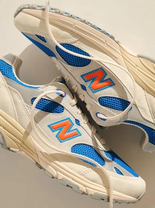Seen in two photos, the impending Kith x New Balance 993 features a black, blue, and orange color palette. Fieg is pictured wearing the sneaker collaboration with a New York Yankees cap and Knicks-branded jacket by his team. Ahead of ComplexCon Las Vegas, Matthew J. Welty took to social media to share a look at a second, off white-based pair of the project. Fieg was previously spotted wearing the pair as well.