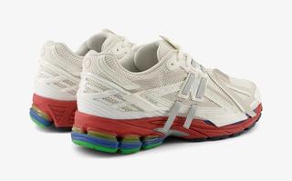 The 1906A's color scheme adheres to New Balance’s staple palette of understated neutrals, ensuring that the sneaker remains versatile for daily wear. However, it's the vibrant outsole that truly sets this model apart, with an unexpected mix of primary colors—red, blue, and green—providing a striking contrast against the neutral upper.
