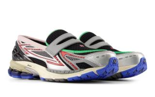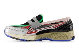 This latest iteration pushes the silhouette into more expressive territory. A predominantly black and grey upper lays the foundation, while metallic silver overlays give the shoe a technical, almost mechanical edge. From there, sharp color accents take over: green piping traces the toe, red detailing cuts through the midfoot, a soft pink collar adds contrast at the rear, and a royal blue outsole anchors the design underneath. The result feels closer to a performance runner deconstructed into loafer form — a look that lands somewhere between futurism and controlled chaos.