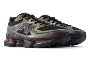 Anchored in black mesh and synthetic overlays, the pair introduces an iridescent green-to-bronze shift across the upper, creating a layered sheen that moves with the light. The finish carries a striking familiarity to the legendary Nike Tuned Air OG colorway — not necessarily by intention, but the resemblance is hard to ignore for anyone who remembers the dawn of the TN era. That shared chromatic energy gives this 2000 an unexpected retro-futurist edge, merging early-2000s tech running cues with New Balance’s modern design language.