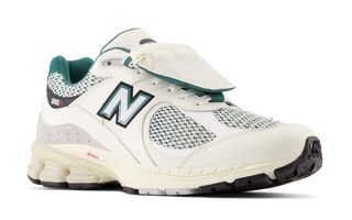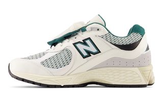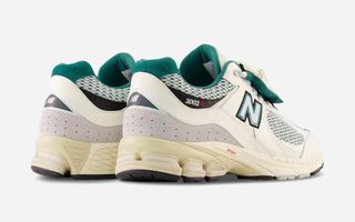 Anchored by a green and cream-striped mesh upper and white netted overlay, the pair immediately sets itself apart from your typical 2002R release. Overlays of Sea Salt nubucks and trimming of black and green work throughout the pair, with aged-look midsoles, black and grey rubber outsoles, and a removable ripstop pouch rounding out the design.