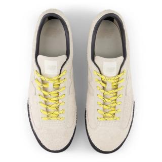 A punchy yellow “Starburst” tone cuts through the neutral upper, injecting energy without overwhelming the design. The bright lace swap feels intentional — almost like a nod to classic track spikes — and gives the pair a subtle sport-meets-lifestyle edge. Tonal “N” logos keep the branding understated, allowing the texture and color blocking to do the talking.