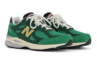 First looks at the 990v3 show the pack’s overarching theme, with tonal green mesh and suede working in varying textures and shades across its upper. Midfoot N motifs arrive in golden-yellow, with Teddy’s evergreen aged-look accents applied to the sole units, liners, and laces. The former is met with classic pops of grey and black to marry up with the Made In USA-branded tongues and heel overlays.