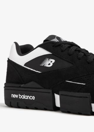 The refined "Orca" palette of black and white is visually striking and further enriched by the deliberate choice of materials. Swapping out the standard leather for plush suede in critical areas like the quarter and mudguard infuses the silhouette with a textured contrast, enhancing its visual appeal. Accents of white in co-branded details, the collar, and intricate piping throughout craft a "Panda" effect that resonates with the sneaker's grayscale theme while subtly nodding to the orca's iconic patterning.
