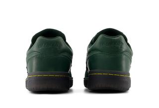The upper comes in a deep green leather that matches the exact shade of the shop’s walls, while gold stitching nods to the warm wood tones found throughout the space, including its well-known board wall. The rubber sole arrives in a steel-toned finish, mirroring the metal framework that supports the shop. Even the tongue’s burgundy NB Numeric logo ties back to the store’s flooring, continuing the theme through subtle but intentional details.