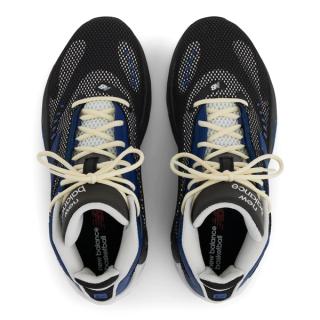 The P400’s design is anchored by a tightly patterned checkerboard upper, giving the shoe a textured, almost armored appearance. Solid black toe caps keep the look grounded, while the side panels transition into a black-and-white weave that adds visual depth and movement. Inkwell blue accents appear on the oversized “N” logo, lace stays, and a sculpted midsole element, providing contrast without overwhelming the design.