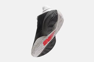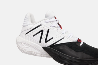 The NBA's reigning champion, Jamal Murray, is fronting the campaign for the TWO WXY V4. The shoe’s initial colorway, “Dualism,” presents a monochrome split—jet-black mesh for the forefoot paired with a pristine white leather heel. Subtle crimson highlights feature on the tongue and the oversized 'N' logo, adding color to the shoe.