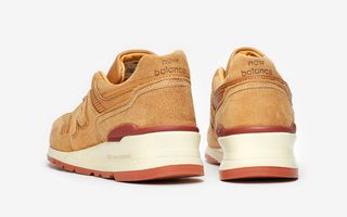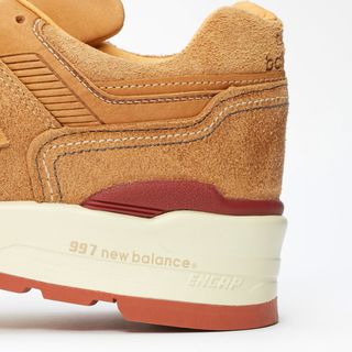Boston-based brand New Balanceis heading halfway across the country to join forces with one of America’s most beloved boot makers, Minnesota’s Red Wing, to deliver a special edition 997. This Red Wing x New balance 997 brings with it all the premium materials and craftsmanship you’d expect from both brands, ushering in seasonal hues of golden tan across its supple suede and leather upper. Up top is completely tonal, with slightly lighter-colores leathers reserved for the tongues, the vamp, heel, and “N” motif underlays, as well as the luxurious liners. Suede overlays are held in place by slightly contrasting white stitching before a muted burgundy heel clip brings in a bold flash of color. Classic boot-like sail midsoles come cushioned by a light reddish-brown rubber outsole, while literal hot branding hits both the tongue and heel. Aside from the entire boot aesthetic, the only other visual connection to the Midwest bootmakers is the co-branded insoles.