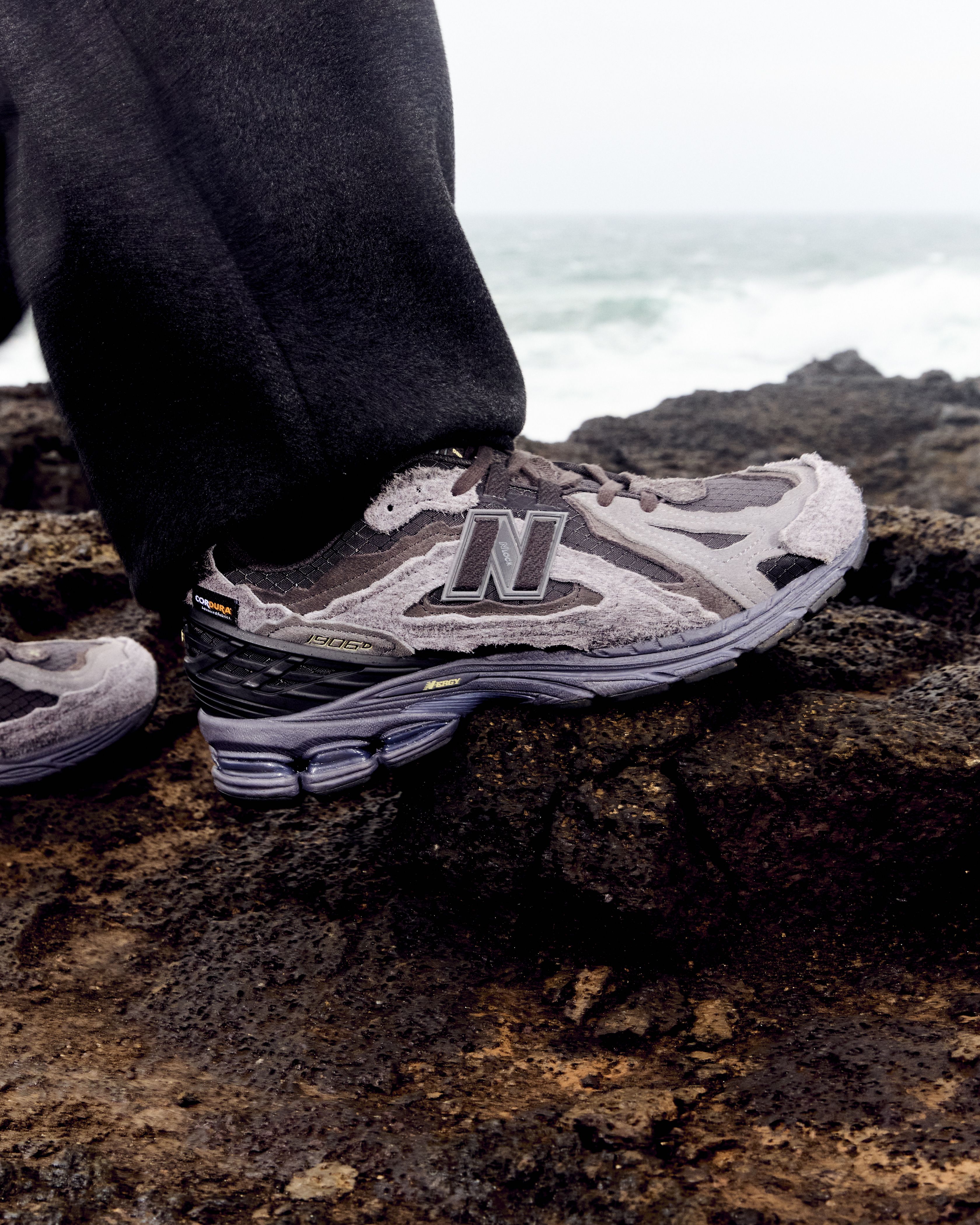 Drawing inspiration from Iceland’s natural landscapes, the pairs mirror the rugged beauty of black sands, volcanic rock, and the region’s harsh weather conditions. Built for resilience, each pair features a combination of water-resistant Cordura and durable ripstop materials, paired with layered suede and mesh to give the shoe a tactile, distressed look. The design approach maintains the deconstructed aesthetic that made the Protection Pack so recognizable while adapting it to a modern trail-inspired silhouette.