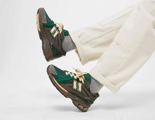 The coveted collection unfolds with two dynamic iterations of the classic New Balance 1906R silhouette, each narrating a unique color story. The first colorway orchestrates a harmonious blend of green, brown, and tan hues, reminiscent of the lush trails once treaded by avid runners. The green-based ensemble accents the toe box overlays, suede underlays, and mesh tongue, hinting at nature's tranquility amidst the hustle of daily jogs.