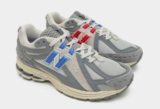On the other hand, the counterpart embraces a greyscale palette accented with vibrant red and blue hues, exuding contemporary finesse. The grey pair further spices up the narrative with a mismatched "N" logo on the midfoot, a bold blue on the lateral side juxtaposed against a fiery red on the medial, stirring a playful dialogue between contrasts.