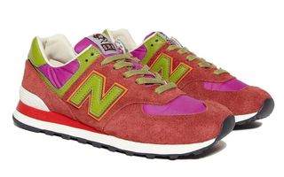 Options based in green and magenta nylon arrive with shaggy suede overlays of washed olive and rustic orange respectively. Present leathers present on both pairs in olive at the ankle and heel overlay, with a brighter lime sitting atop the midfoot N motifs. Midsole wedges arrive on the green offering in purple, with the other option opting for a striking red, and both pairs come complete with a classic white and black sole unit underfoot, co-branded tongue and heel detail, and SR monogram embroidery in the rear.