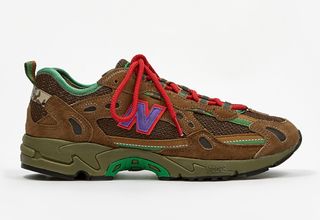 This latest edition of the ongoing partnership is a subtle colorway that moves away from previously released Joker themes on the 990v3 silhouette and into a subterranean color palette. The aptly named “SEWER STOMPERS” perfectly sets the tone for the design, a medley of materials make up the mesh, nubuck and nylon upper that’s principal hues are earthy-brown variations. Contrasting red and purple “N” branding, red laces, and green piping is seen on the eyestays and nylon paneling creating eye-catching details that offer some relief to the sewer-esqe undertones. Sitting at the foundation the shoe is a green Abzorb tech midsoles and black rubber outer soles for a lightweight comfortable ride, finishing the look are camouflaged heel overlays that read “Stray” on one shoe and alternatively “Rats” on the other.