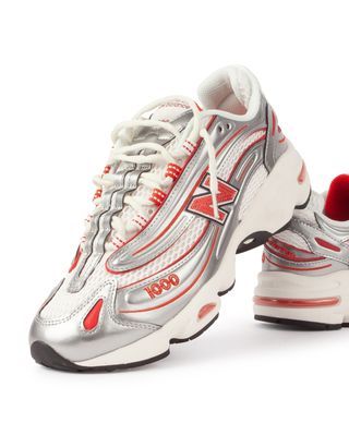 This latest collaboration on the New Balance 1000 channels a distinct Y2K vibe that resonates with both brands' commitment to blending retro influences with contemporary design. The sneaker features classic white mesh uppers complemented by metallic silver overlays that enhance its futuristic look. Chilli red accents provide a bold contrast, appearing on the co-branding elements at the tongue and heel, infusing the pair with an energetic flair.