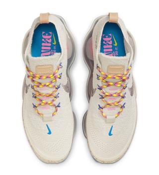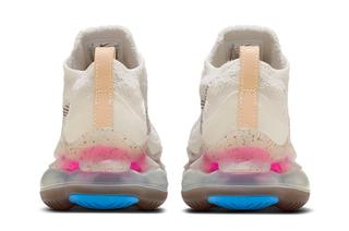 Starting out with a simple cream Flyknit upper, the pair quickly layers on the outdoor-inspired elements, including multi-color boot-inspired laces, flecked midsole pieces, and vibrant pops of pink and blue appropriate for an AGC line release. The vibrancy continues on the forefoot mini Swoosh and purple Flywire lacing system; the insoles, too, feature pops of pink, blue, and yellow on its stylized graphics. The pair is then completed by classic gum traction and a Swoosh-branded carabiner to really drive home the inspiration.
