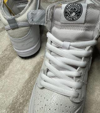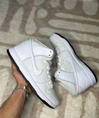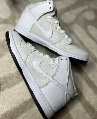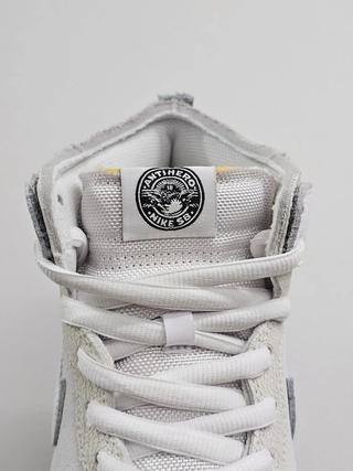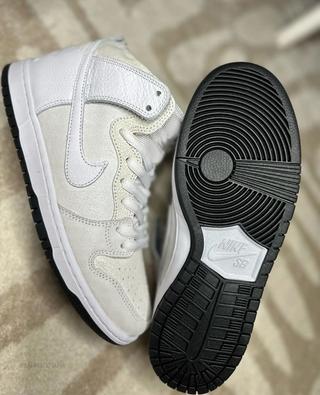 The ANTIHERO × Nike SB Dunk High Pro QS showcases a clean, crisp white and black colorway that speaks to both simplicity and sophistication in skate footwear. The all-white upper provides a smooth canvas that perfectly highlights the bold black outsole, creating an eye-catching and timeless stark contrast. This color scheme enhances the shoe’s aesthetic appeal and offers versatile styling options for both skate sessions and casual wear.