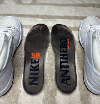 Branding is a key feature of this collaboration, with Antihero's distinctive logo prominently displayed on the tongue, heel, and insole. These subtle yet impactful placements ensure the branding is noticeable without overpowering the sneaker's sleek design. It's a nod to Antihero’s legacy in the skateboarding community and its continued influence on the sport’s culture and style.