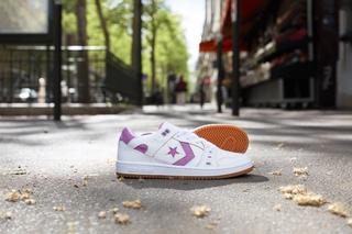 One of these exclusive footwear styles includes Sablone's latest collaboration with Nike SB on the Dunk Low. This sneaker showcases her keen eye for aesthetic detail, featuring a cobblestone-textured suede upper in olive green with fuchsia pink accents and a premium white leather base. The muslin-tinted midsole and dark green outsole complete this unique design. Additionally, the collaboration extends to the Converse CONS AS-1 signature shoe, presented in white and pink, hinting at a potential release as part of a collaborative pack.