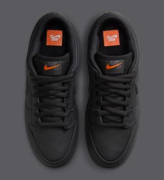 The "Triple Black" Nike SB Dunk Low is designed to make a bold statement with its all-black color scheme. This understated approach allows for a versatile sneaker that can seamlessly transition from skate parks to streetwear. Adding a subtle pop of color and branding distinction, the sneaker features a small orange Nike Swoosh on the tongue, providing a hint of flair against the otherwise black-on-black silhouette.