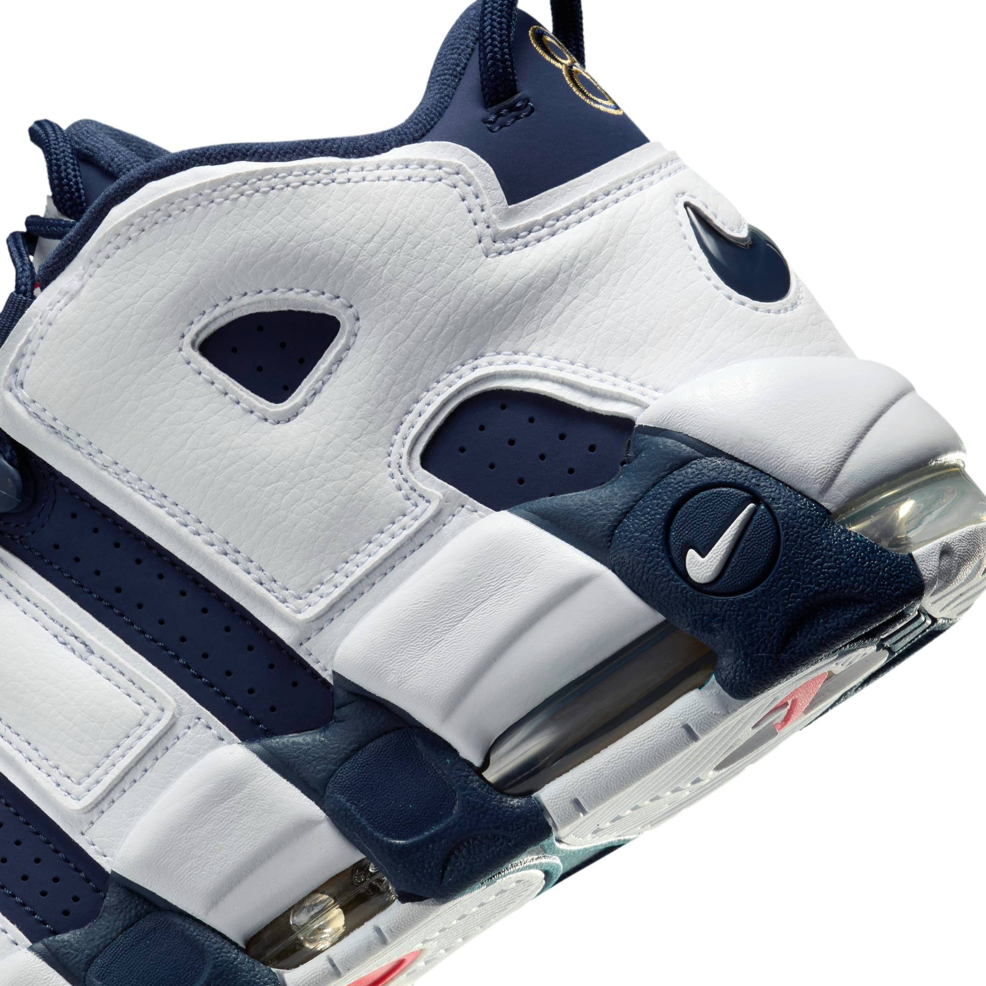 The Air More Uptempo “Olympic” doesn't just carry the colors of the American flag; it's steeped in basketball royalty. First witnessed in the feverish atmosphere of the 1996 Summer Olympics in Atlanta, Georgia, this silhouette supported the legendary Scottie Pippen as he and the Dream Team clinched basketball gold. The forthcoming model is anticipated to retain the authentic tumbled leather and nubuck construct that first captivated audiences over 27 years ago, complete with Pippen's #8 in "University Gold" proudly emblazoned on the heel.