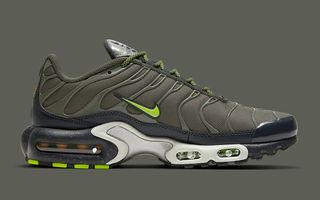 Though only equipped along the pair’s traditional tongue line, 3M’s influence on the pair extends to the tongue, with bold, metallic hex paneling arriving on-point with past 3M x Nike releases. Elsewhere the sneaker is heavily influenced by the outdoors, with heavy-duty mesh uppers, outdoor-inspired roped laces and ACG-era flecked midsoles — all of which arrive in drab olives, forest greens, and vibrant neons. Completing the design is a metallic midfoot shank, traditional TN branding throughout and a set of neon green Air supports beneath.