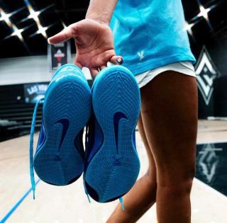 All the meticulous design details baked into the long-anticipated debut model for the Las Vegas Ace appear on the "Blue Fury" offering. Close-up shots of the pair haven't surfaced as of yet, but the earliest images of the sneaker confirm one thing: the color scheme adds fuel to the fire that is eagerness for the A'One to see its global launch.