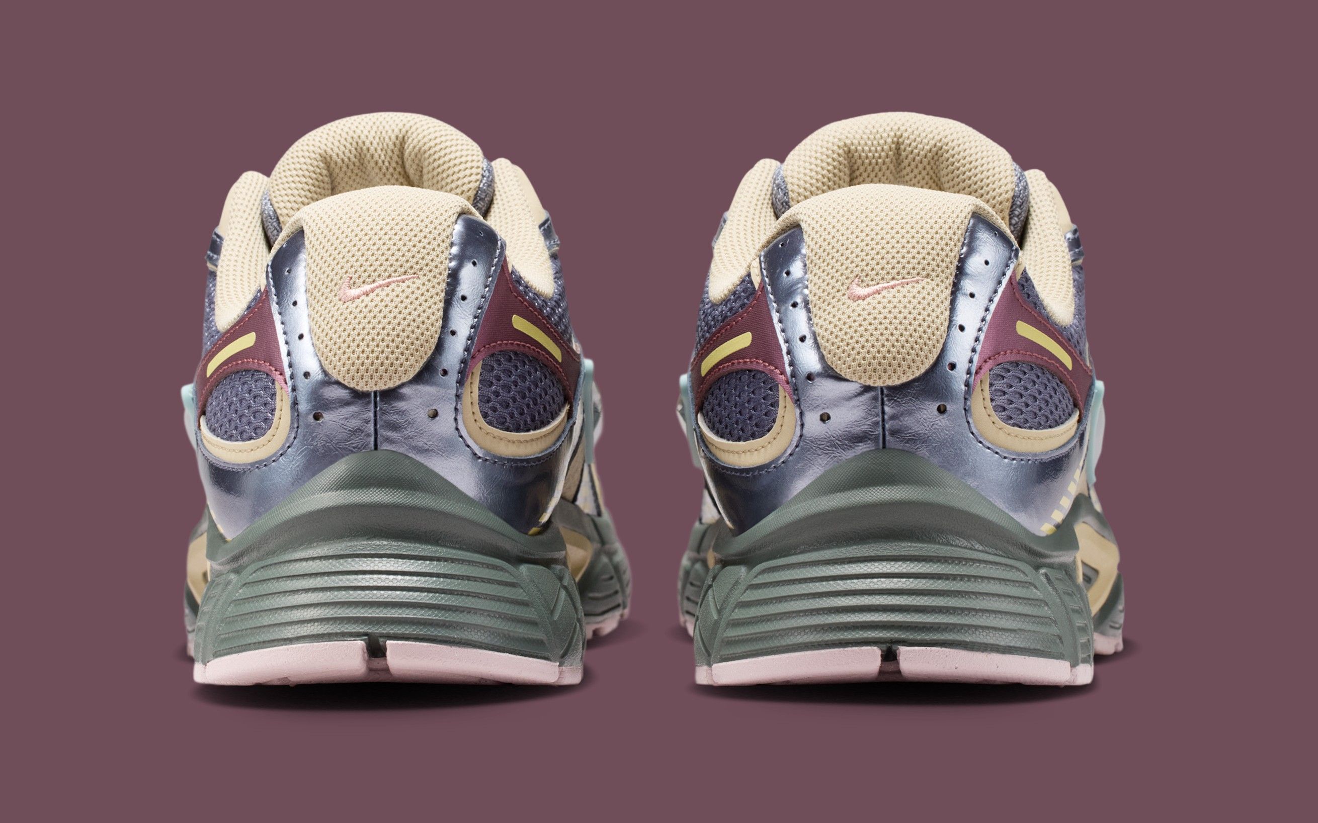 The design follows A Ma Maniére’s established approach. Muted, layered tones replace loud contrast, with a mix of mesh, synthetic overlays, and soft metallic accents giving the shoe a slightly elevated finish without breaking from its performance roots. Subtle branding and restrained color blocking keep the focus on materials and texture, allowing the collaboration to feel intentional rather than decorative.