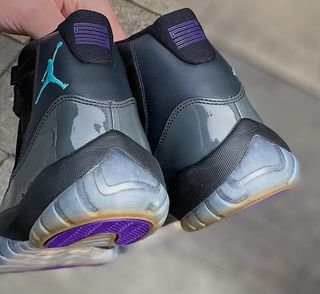 Today, thanks to Index Portland, we get a rare look at an “Alternate Gamma” Air Jordan 11 Sample that no one outside the Jordan Brand inner circle knew existed. The pairs is similar in many ways, but looks vastly different than the retail release. It keeps the murdered-out midsole and black mesh upper, whilst keeping on the Gamma Blue Jumpman branding, The differences arrive with the noticeably lighter patent leather overlay and back heel panel, as well as the inclusion of a fully-translucent outsole. Capping off the sample’s differences is the use of a Hornet’s friendly purple in place of the retail-released Maize on the heel and tongue branding, as well as hits on the outsole’s traction pads..