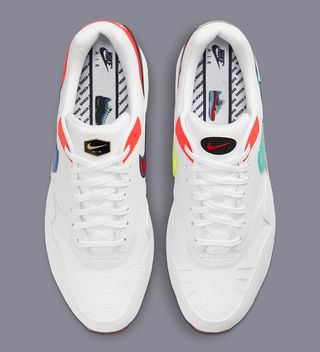 The brainchild of the legendary Tinker Hatfield subtly tips the cap to its creator by displaying OG color splashes throughout. The predominantly white core of the shoe is comprised using a plethora of textiles including leather, nubuck, rubber, plastics, and highly reflective 3M synthetics. The AM95 is clearly represented on this release thanks to bold red lace stays, and other silhouettes (all listed on the insoles) are given the nod thanks to the varying Swooshes, toe box designs, and alternating tongue branding. Underfoot sits and a white and navy blue midsole capped off by tri-toned black, white, and red rubber outsole. Completing the look is the “History of Air” insoles and the obvious clue as to its release date with the debossed “3.26” (AKA Air Max Day) stamped across the heel of the left shoe.
