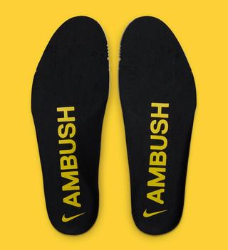 Though only limited sights of the pair have been provided, some major design elements can be identified. A solid black sole unit sits below, with tan nubuck uppers and vibrant yellow “AIR” profile overlays. The latter has been modified to act as the pair’s lace loops, which now house a thick olive-reflective lace option. Black jewel Swooshes sit at the heel, and so too does AMUBUSH branding. The collaborative pair will also release in an OG-inspired Black/White colorway and a joker-esque effort in purple and green, both of which are now updated below with first looks; the Limestone is now available by official retail imagery.