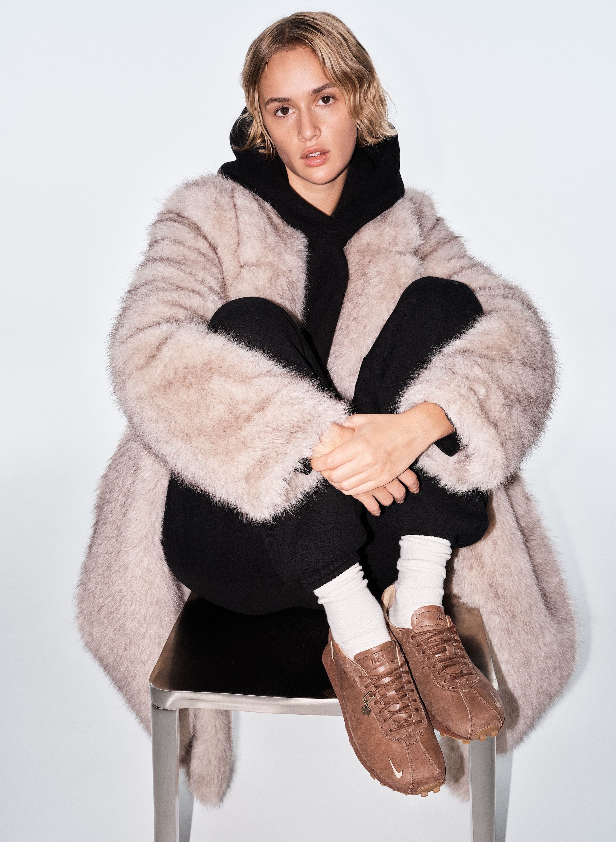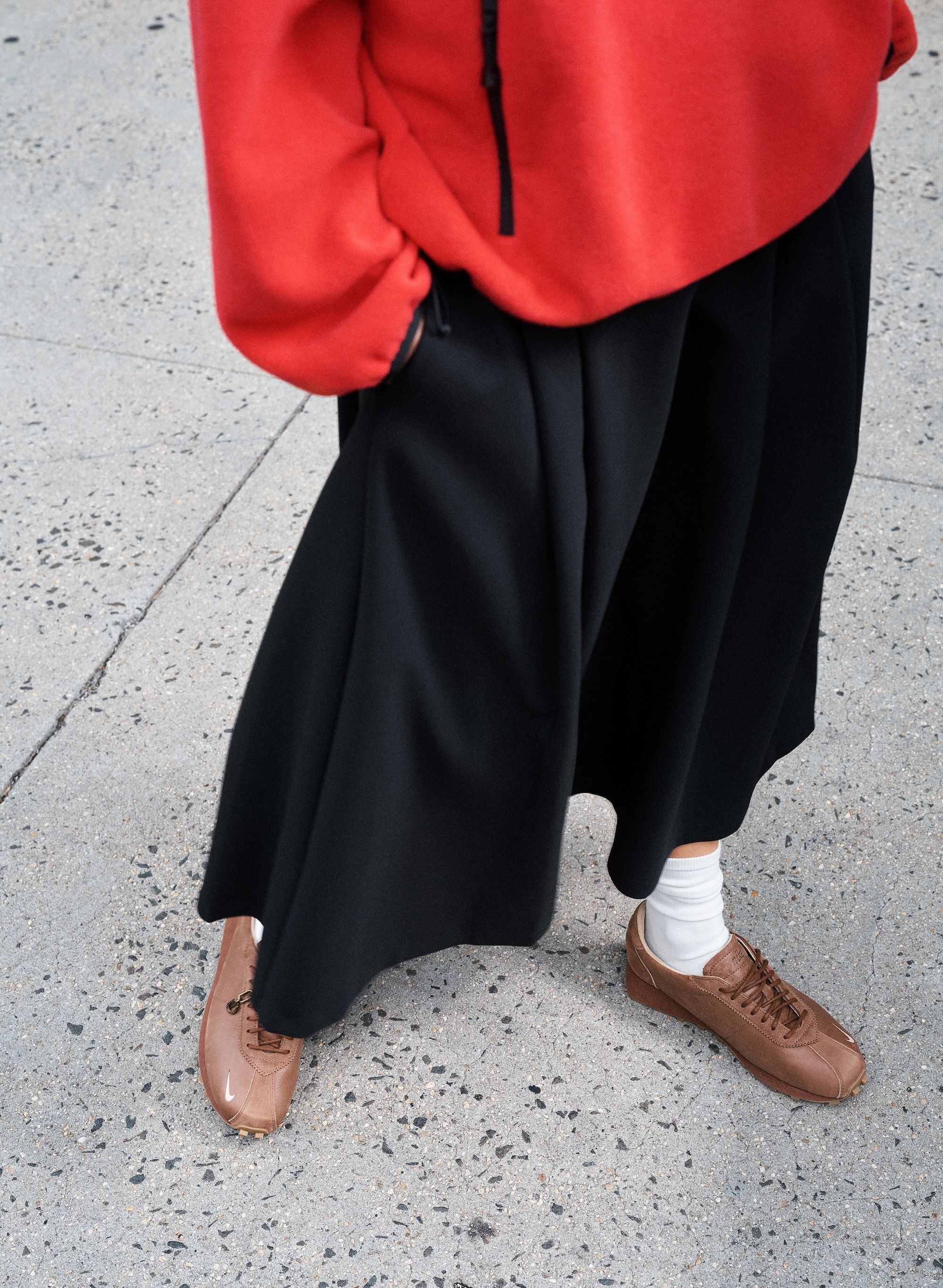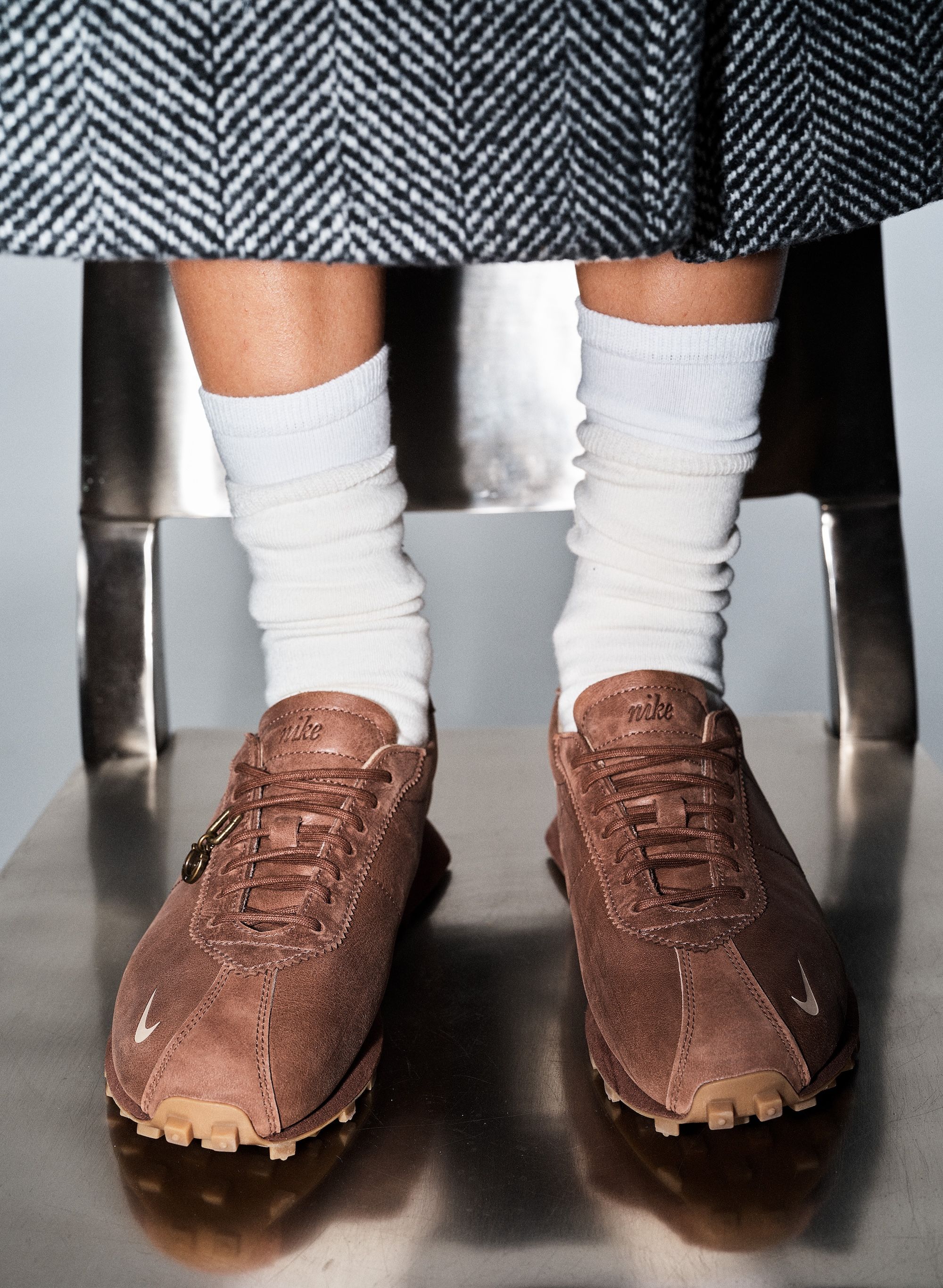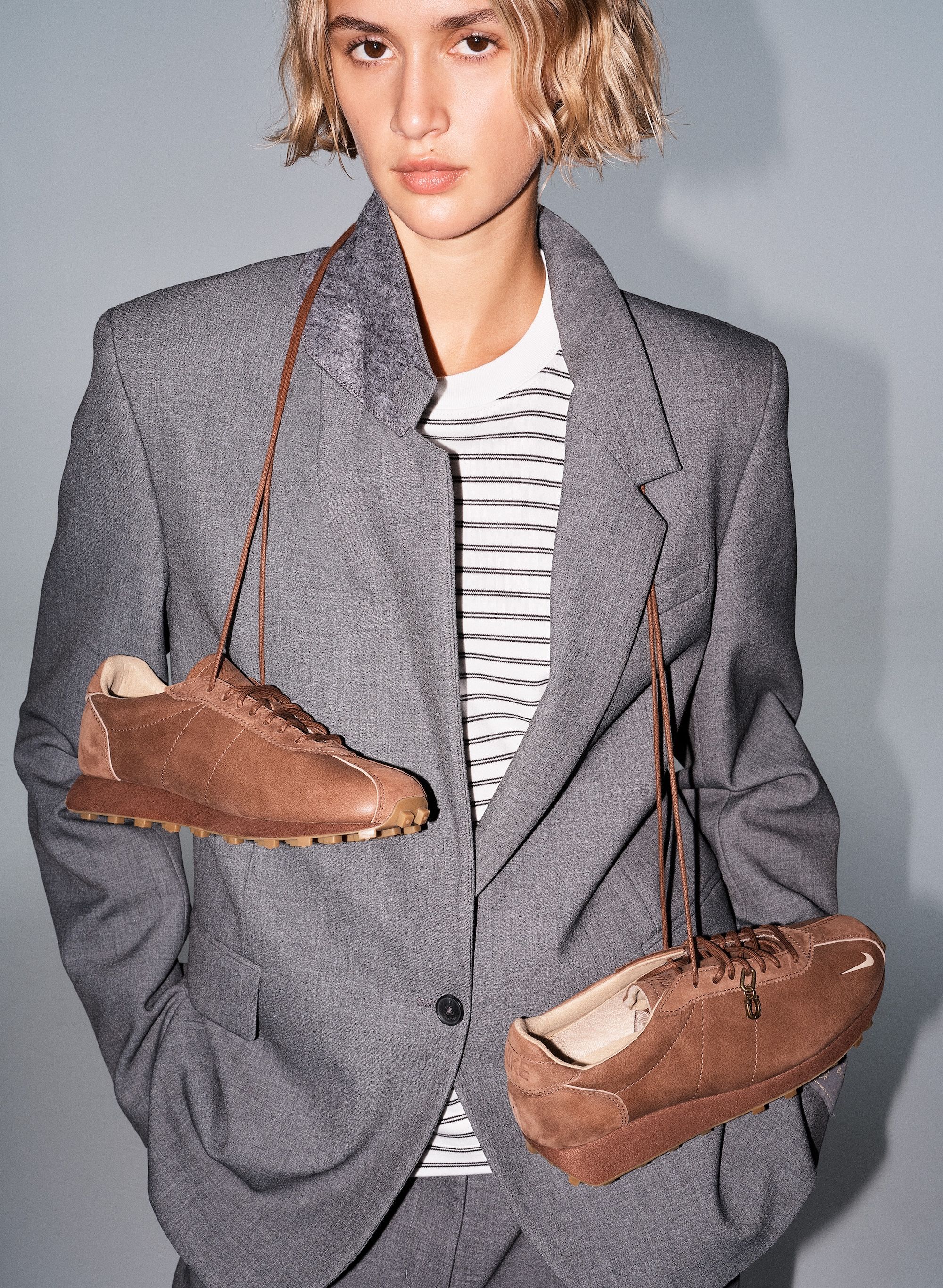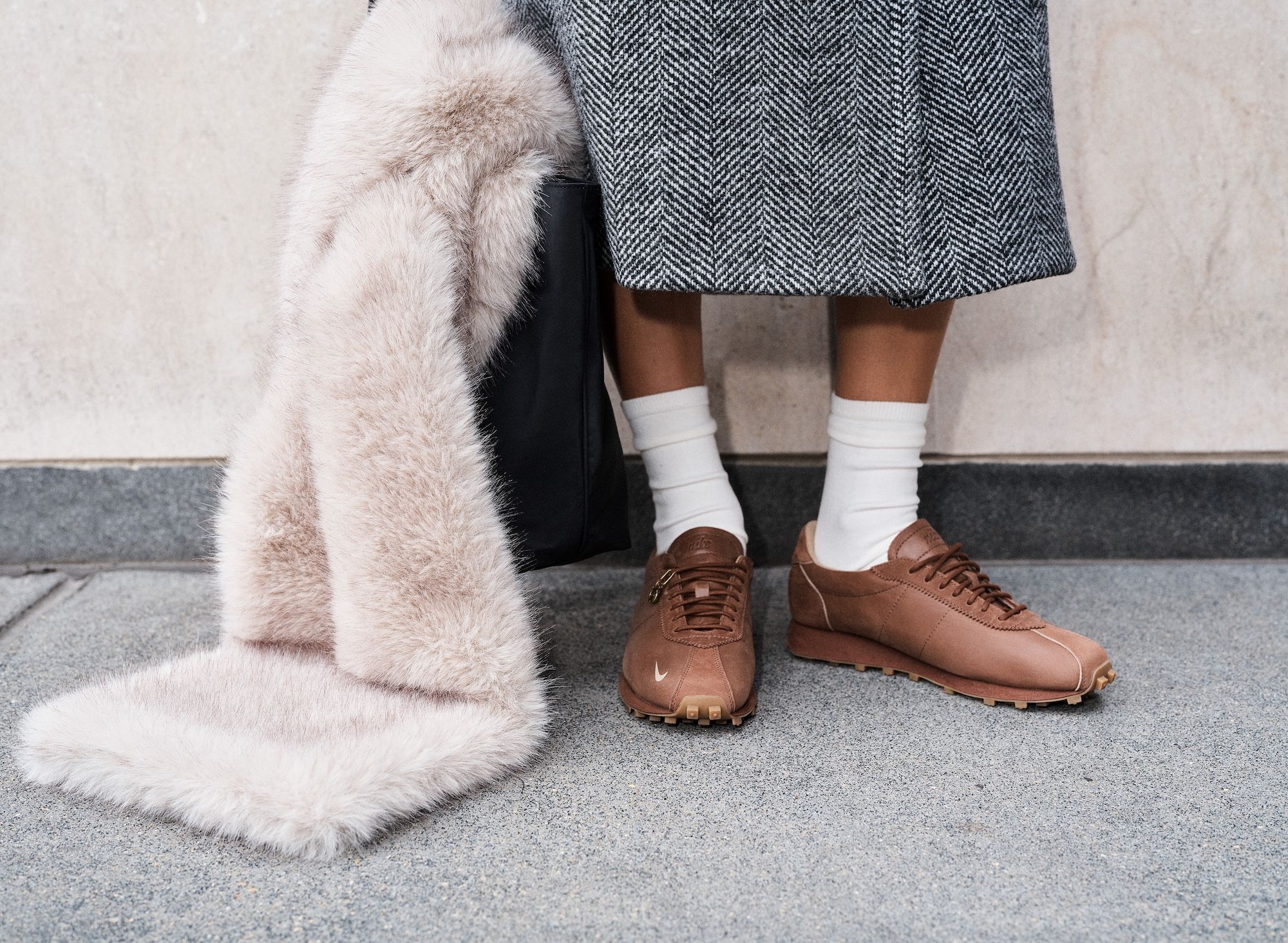 The Aritzia x Nike LD-1000 “Fauna Brown” arrives dressed in rich brown leather across the upper, replacing the model’s traditional nylon base for a more elevated, fashion-forward finish. A muted Swoosh and gum sole complement the tonal look, while exposed stitching and a deconstructed tongue retain the silhouette’s heritage running DNA. The result is a versatile design that merges streetwear and studio polish — an ideal crossover between Aritzia’s understated sensibility and Nike’s archival innovation.