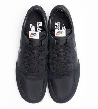 Featuring an all-black look, the pair is constructed in a classic mix of nylon, and suede, with leather Swoosh overlays, atop a murdered-out sole unit. CDG branding in the back is black on black, whilst tongue tags and co-branded insoles boast a bright white finish.