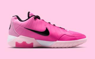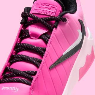 Built on the LeBron Witness IX platform, the Bronny James x Nike LeBron Witness IX arrives in a bold pink execution with black accents and a sculpted midsole finished in soft blush tones. The performance model features a lightweight upper with molded sidewall ribbing, ReactX cushioning in the heel, and an aggressive traction pattern designed for quick cuts and transition play. A mini Swoosh sits low on the forefoot, while a larger lateral Swoosh carries a subtle gradient finish.