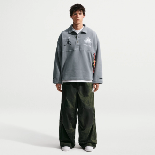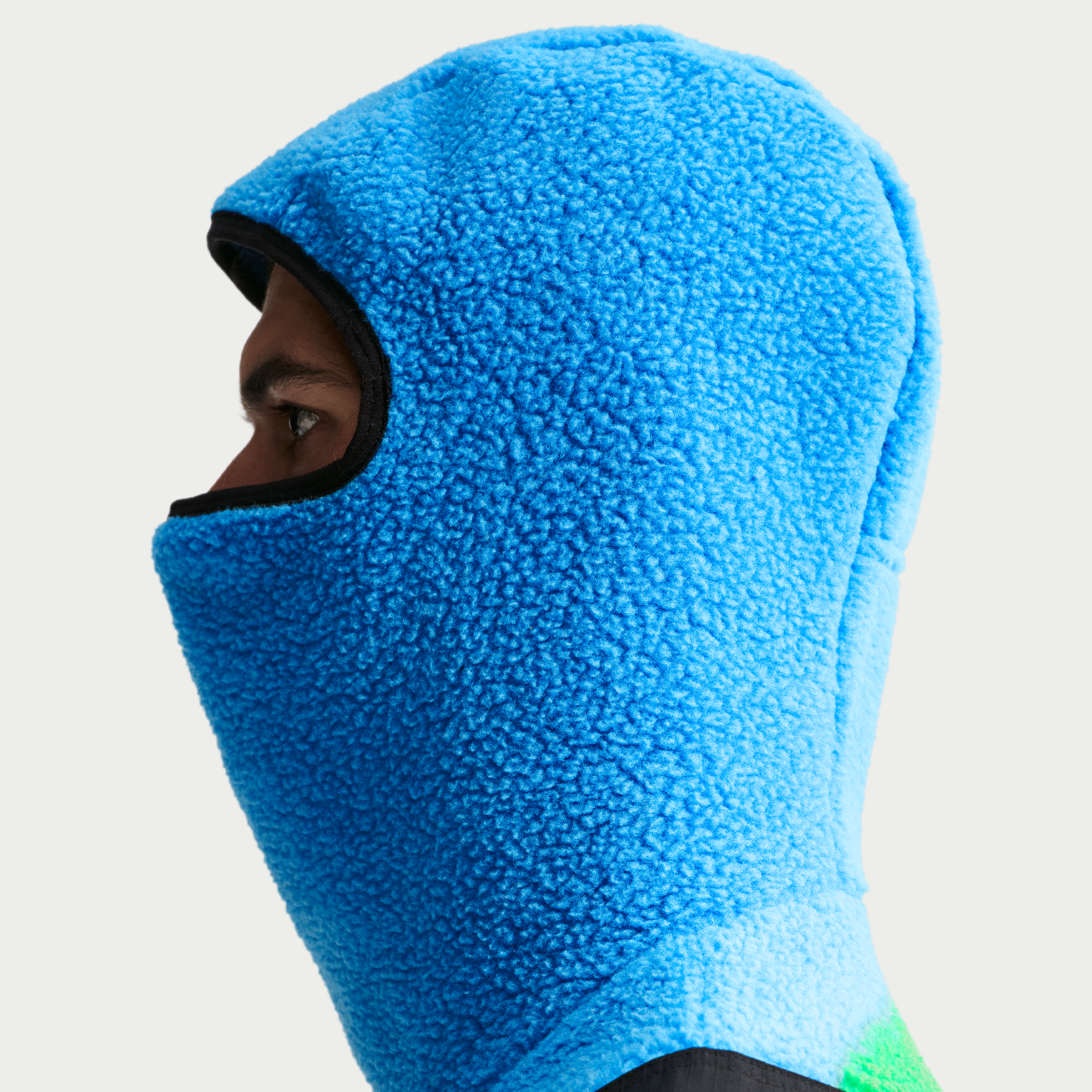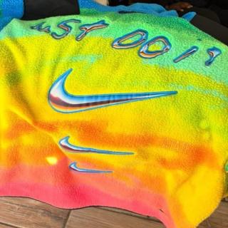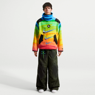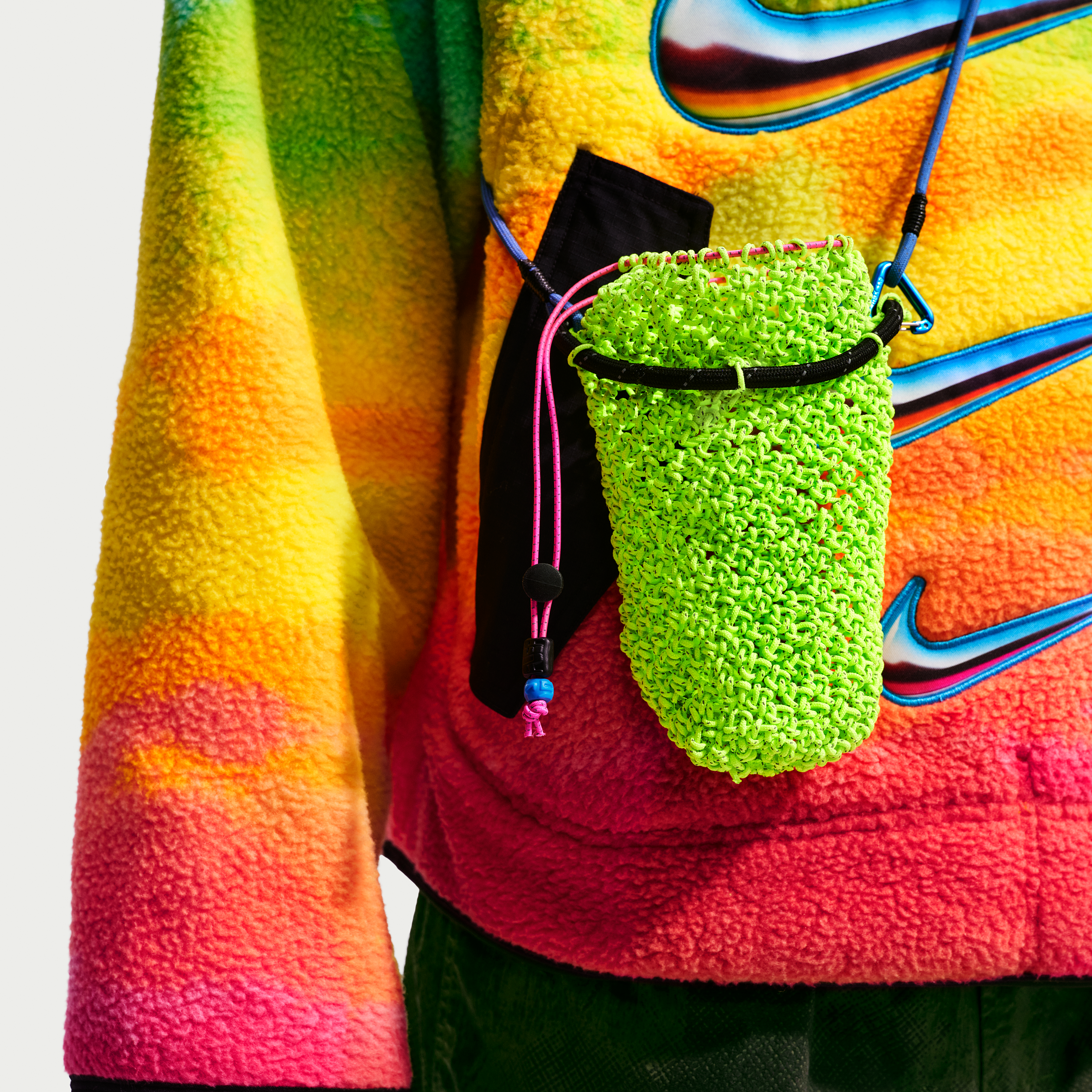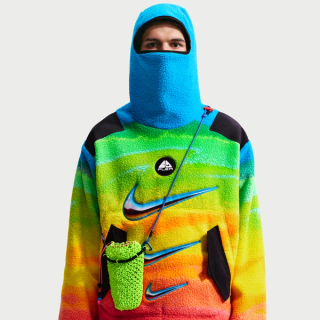 The fleece-heavy silhouettes on display feel intentionally loud, with psychedelic gradient dyes, oversized proportions, and an abundance of Swooshes scattered across the surface. The standout 'Baklava' hoodie layers neon greens, blues, oranges, and pinks in a washed, almost heat-map effect, finished with multiple embroidered Swooshes and bold graphic placements that feel more art installation than activewear. Another piece opts for a more restrained palette, but still carries CPFM’s unmistakable fingerprints through playful graphics, asymmetrical detailing, and tactile embellishments that elevate simple fleece into statement gear.