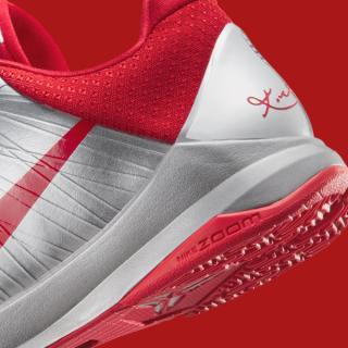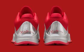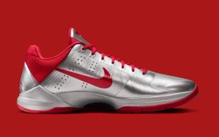 The pair sports a metallic silver upper contrasted by bold red accents on the Swoosh, laces, inner lining, and outsole — a clear nod to Indiana’s team colors and Clark’s high-energy game. Subtle textural detailing runs across the upper, while her personalized Kobe PE logo on the tongue ties her rookie season to one of Nike Basketball’s most storied lines.