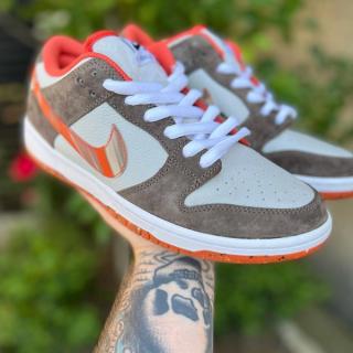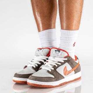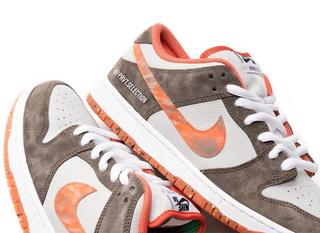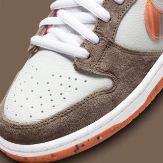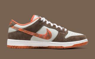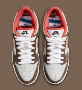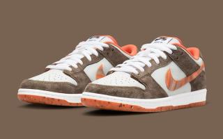 A first look at the Crushed D.C. x Nike SB Dunk Low implies something simple, but as you get into the details, you’ll find there’s much more than first meets the eye. With premium tumbled leather uppers of off-white, the pair looks to dusty nubuck overlays of light chocolate and pops of vibrant orange at the liners, Grind Rubber-gritted outsoles, and through the decorative Swoosh. A fine argyle-like print is delivered subtly on the tongues, with co-branded tags on both its outer and inner sides complete the design.