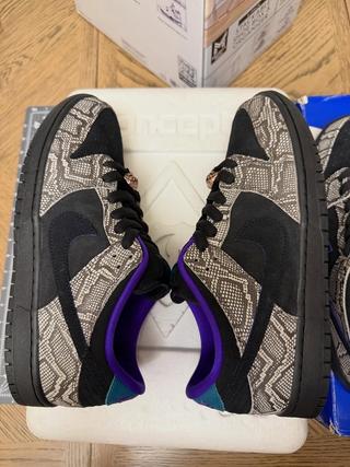 Hailing from Chandler, Arizona, the Team USA skater and Olympic hopeful brings his personal story to the Dunk Low silhouette. The pair features a striking mix of materials and textures, headlined by faux snakeskin overlays that nod to Arizona’s desert wildlife—most notably, the rattlesnake. A premium suede base in a "String" hue sets the tone, while bold accents of Bright Spruce, Fierce Purple, and Dark Russet inject energy into the design. Black detailing helps balance the palette throughout.