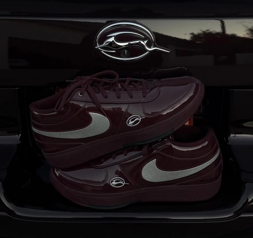 Staying true to Booker’s minimalist approach, the “Impala” colorway arrives in a deep burgundy patent finish with chrome detailing throughout, nodding directly to the vehicle’s sleek exterior. The pair maintains the silhouette’s signature low-profile shape and embossed “BOOK” branding on the tongue, while the metallic silver Swoosh mirrors the polished trim found on the car.