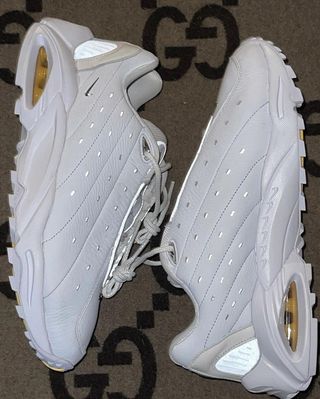 Teased via a few in-studio images further below, the pair is set to arrive first in a bright White/Chrome colorway. While it does share part of its name with existing offerings, the design only seems loosely inspired by the line-up. The tooling, for example, does bear a passing resemblance to the Air Terra Humara, but it also has an overall appearance of mid 90’s Air Max runners, namely the Air Max 95, albeit with added chunk overall.