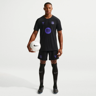 Enjoy detailed product shots of the "Black/Persian Violet" shirt ahead. Items are now available via the FC Barcelona Shop and should arrive via Nike.com soon.