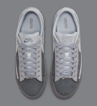 FPAR’s fundamental principle is based on the idea that any original artwork changed at least 40% no longer has its rights — and that belief is brought into the spotlight in a literal fashion, as this pair doesn’t distance itself too from their 2019 effort with Nike SB on the Dunk Hi. Keeping in that theme, the FPAR x Nike SB Zoom Blazer Low continues a greyscale approach, with slate-grey suede uppers working into tonal sole units before a slew of contrasting materials and textures topple the low-cut trainer in droves. Textured Swooshes work in unison with leather tongues and co-branded heel overlays in both finish and hue, whilst a light grey suede set of eyestay overlays are plastered on top. There’s a pop of snakeskin at the lateral forefoot, and more co-branding found at the insoles, and special forefoot dubrae bling. Lastly, Tetsu has flipped the tongue tags from shoe to shoe for an interesting final touch.