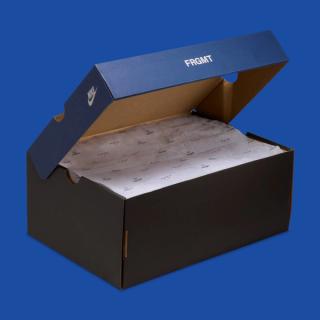 As has become customary with linkups between the Oregon-based juggernaut and Japanese imprint, hits of blue appear sparingly throughout the design and packaging, as do messages related to prototypes and testing procedures.