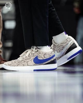 Differing from the 1-of-2 white-and-red fragment Book 1 teased in August, the predecessor features a full python-inspired upper. The light tan makeover is complemented by fragment design's signature bold blue-and-black tones, which land across profile swooshes, heel counters, and outsole detailing. Bolt logos are stamped into the lateral hind-foot, right above manufacturing text on the midsole, injecting streetwear-approved elements into the Nike Basketball sneaker.