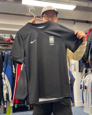 Early images of PEACEMINUSONE's World Cup™ Collection for South Korea reveals a pre-match jersey done in a predominantly black style. The shirt evokes images of the Norway 2026 Away jersey, though G-DRAGON has applied a colorful print on the back. A Woven Jackets and Nike Tech Fleece Suit should accompany the jersey.