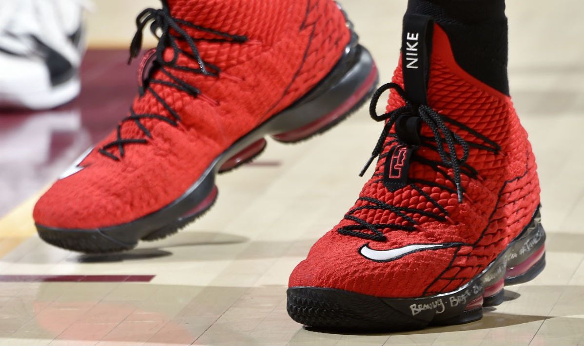 James took the court in this “Red Griffey” Nike LeBron 15, a red-based version of the #LeBronWatch release that dropped earlier this year.